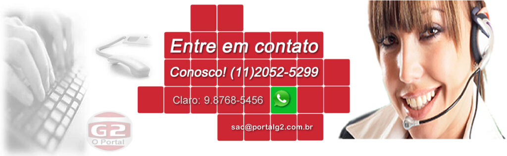 Telefones: (11) 2052-5299 ou CLARO: (11)9.8768-5456 – sac@portalg2.com.br
